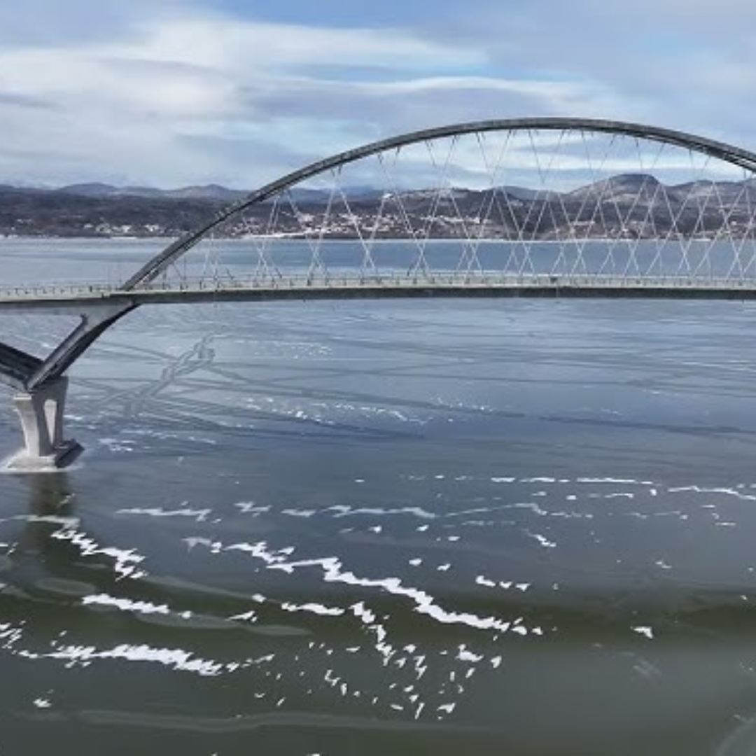 During winter, the bridge and its surroundings transform into a serene landscape, with snow-covered banks and the frozen expanse of Lake Champlain. The area is popular among photographers and nature enthusiasts seeking to capture the tranquil beauty of the season.