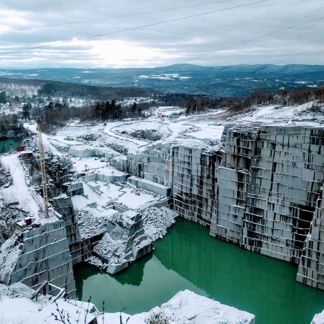 Rock of Ages granite quarry in Barre, Vermont, is the world’s largest active deep-hole dimension granite quarry, reaching nearly 600 feet in depth. It can be seen by using Corridor 25A.